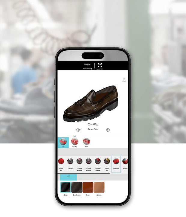 Choose the type of shoe and last and customize your order by selecting from a wide range of materials, color options, leather finishes, soles, and various details, achieving a distinct and entirely exclusive look.